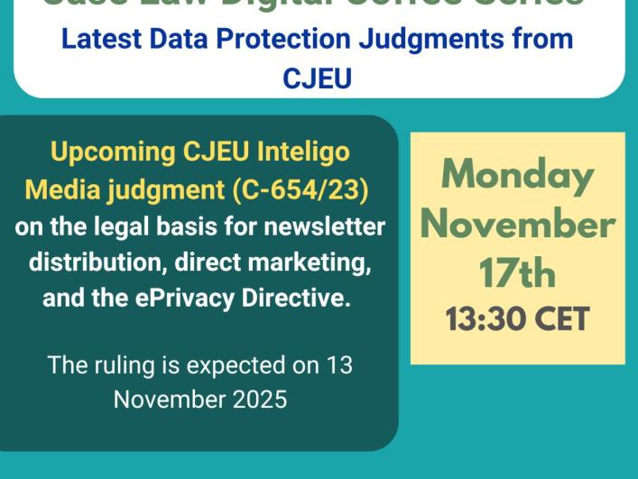 Join Data Protection Law Scholars Network (DPSN) and Law, Science, Technology & Society (LSTS) for our next Case Law Digital Coffee, where weโll take a closer look at the latest CJEU judgments on data protection, and, most importantly, talk about it toge...